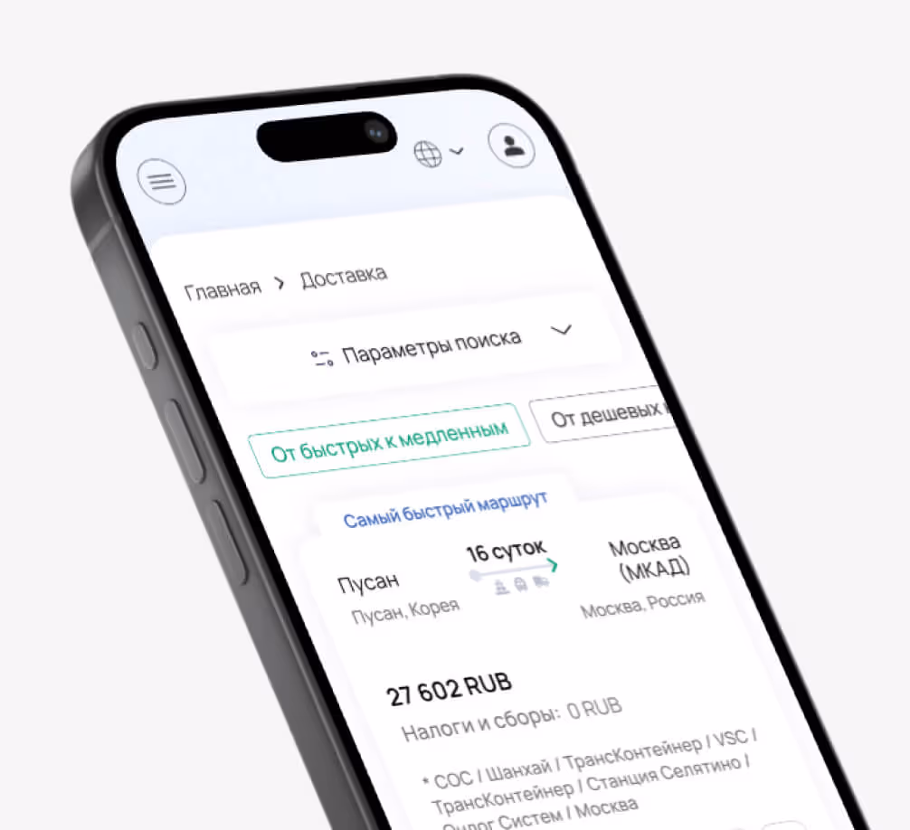 On the example of the Delivery flow (mobile): the user selects the origin and destination cities → selects the cargo type → input fields relevant to the selected cargo type appear → when special conditions are required, additional fields for transportation requirements are revealed.