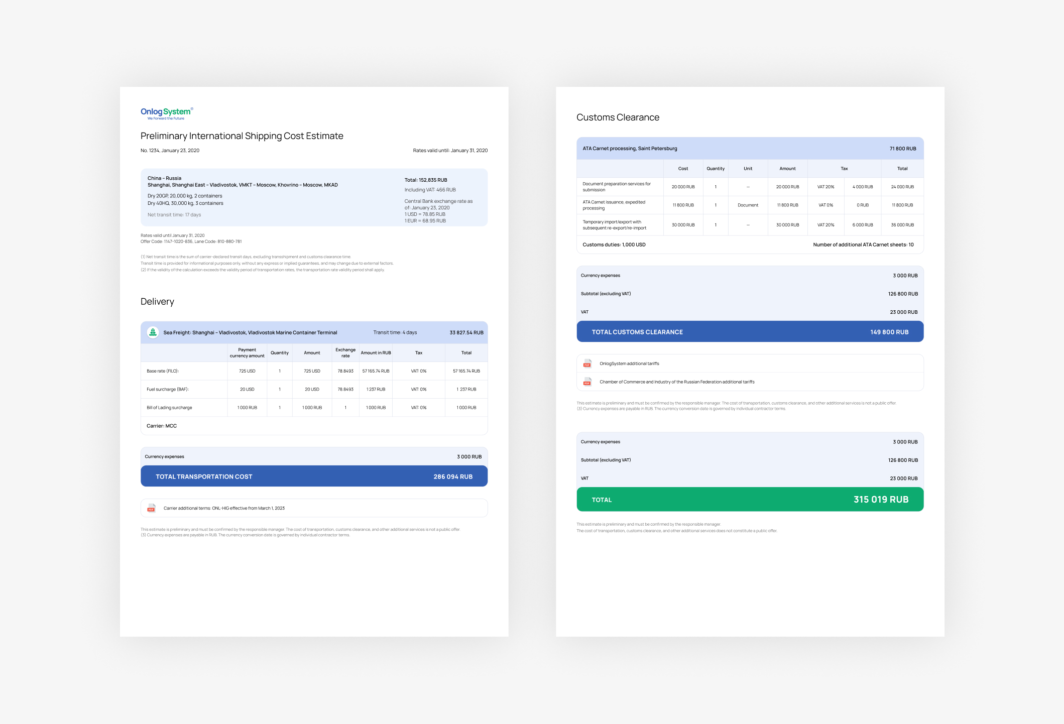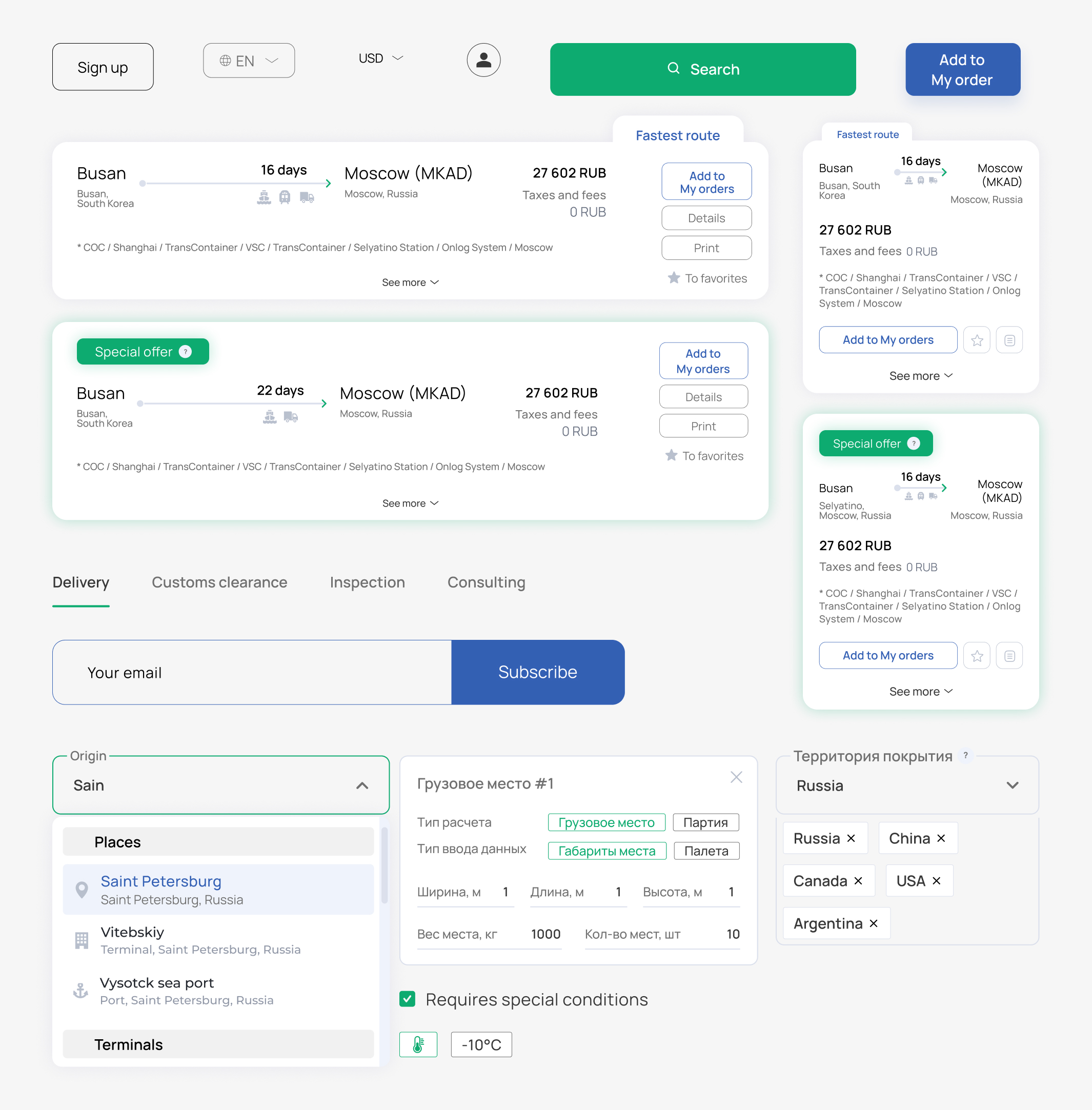 At the interface level, each service page was split into two primary areas: → Calculator widget, where users enter shipment or service data → Results list, displaying all available options based on the input.